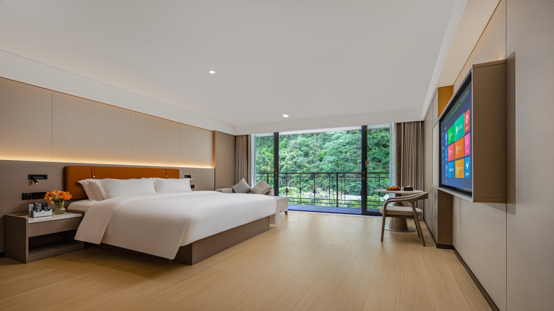 便利设施:多种规格电源插座、空调、书桌、房内保险箱、220V电压插座、开夜床、针线包、遮光窗帘、手动窗帘、床具:鸭绒被、房间内高速上网、客房WIFI覆盖免费